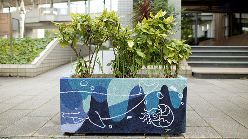 天王洲は水辺に囲まれたエリアだが、海洋生物がこのエリア内にはいないことに今回は着目し、プランター内の海で自由に泳ぐ海洋生物を描くことにした。PROFILE