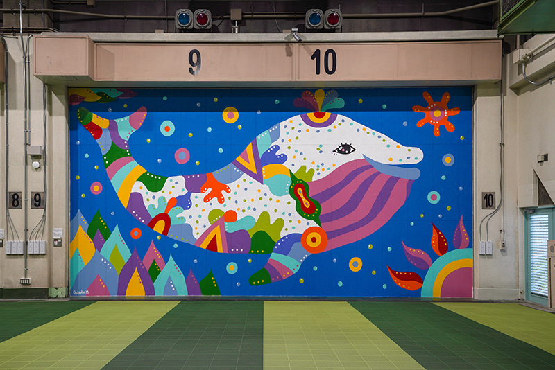 多様性を表すカラフルな色で描いたクジラの作品。古くから人や物が行き交う運河があり、江戸時代には巨大なクジラが漂着した伝説もある天王洲の街が、希望に満ちた街であるように、大きなクジラが優しい眼差しで街と人々を見守っている。PROFILE
