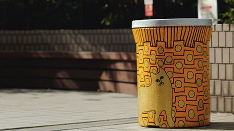 海・公園・まち・人・往来を5色でイメージし、アイキャッチに金色のネコを描きました。現役で使われているダストボックスに、人々はゴミを捨てる以外に近づくことはなく、それ自体を気に留めることはないでしょう。アートは、素通りされる存在にも気づきや楽しみ・新しい価値を生み出すことができるかもしれません。円筒で低位置という形状上、遠目でもわかりやすいシンプルな色に。面で見せることが出来ないので目を留めてもらいやすいよう点を決めることと、小さな子供の視界に入りやすい位置ということも意識して、親しみやすい「ネコ」をキャラクターとして描きました。又、日当たりの良さを活かして金色を配色しました。5匹の金色のネコを見たら良いことがあるかもしれませんよ。PROFILE